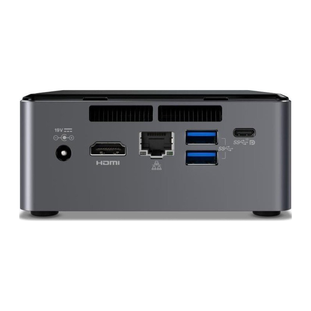 - Posterior: USB 3.0 x2, HDMI 2.0a, Thunderbolt 3 (USB-C con DisplayPort 1.2), RJ-45, alimentación DC